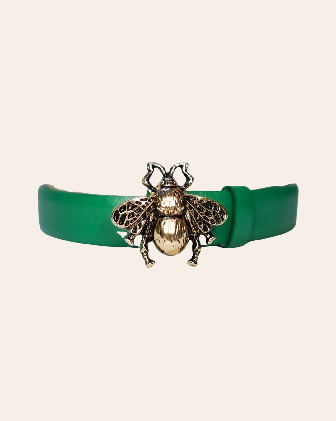 La Hebilla Abeja está diseñada con un baño dorado o un acabado en níquel de alta calidad, esta hebilla combina elegancia y resistencia en un estilo minimalista. Su diseño versátil la convierte en el complemento ideal tanto para looks casuales como formales.
