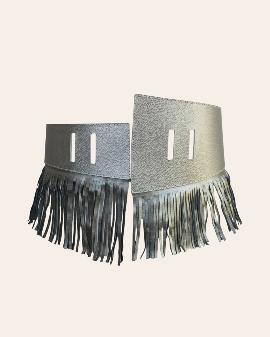 Esta cinturilla esta elaborada en cuero 100 %, combina a la perfección elegancia y rebeldía. Los flecos en movimiento aportan un toque sofisticado y vanguardista que transforman cualquier look. Ciérrala con tu cinturón Belt-Me y eleva tu outfit al siguiente nivel.