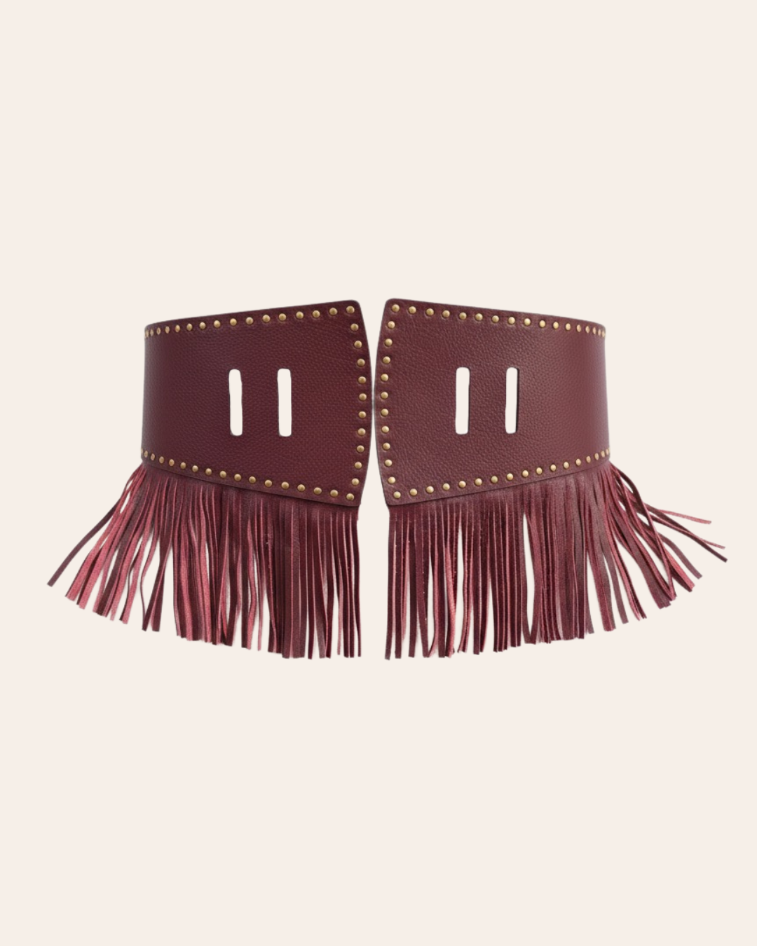Esta cinturilla esta elaborada en cuero 100 %, en donde se combina elegancia y rebeldía. Los taches brillantes y flecos en movimiento aportan un toque sofisticado y vanguardista que realza cualquier look. Ciérrala con tu cinturón Belt-Me y eleva tu outfit al siguiente nivel.