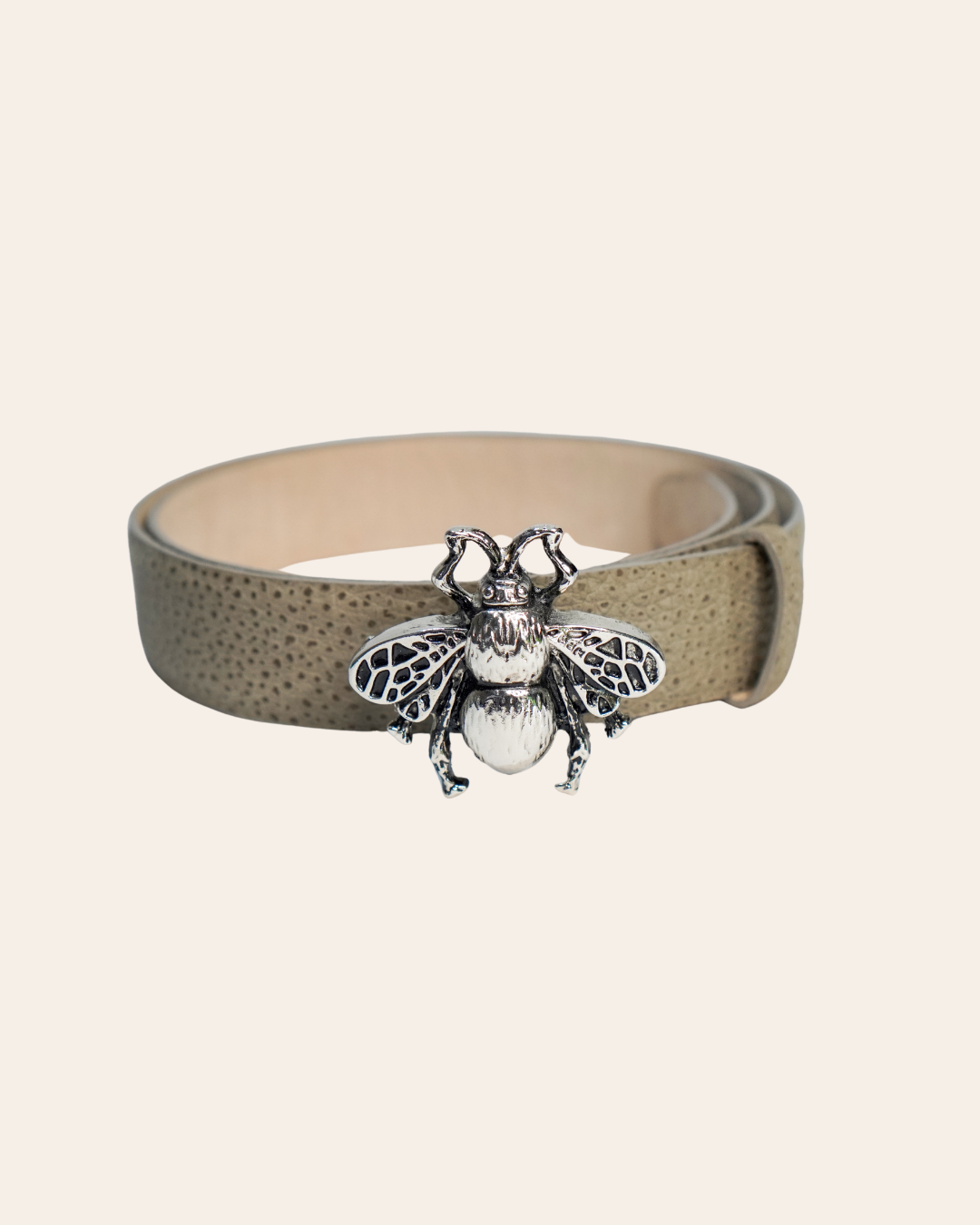 La Correa Abeja Plateada está hecha en cuero vacuno de alta calidad con un acabado rugoso y elegante. Su hebilla metálica en Zamak, acabada en níquel, ofrece un diseño minimalista y duradero. En el reverso, lleva un sutil grabado de nuestro logo. Con ajuste regulable y un ancho de 2.5 cm, es ideal para combinar con looks casuales o formales.