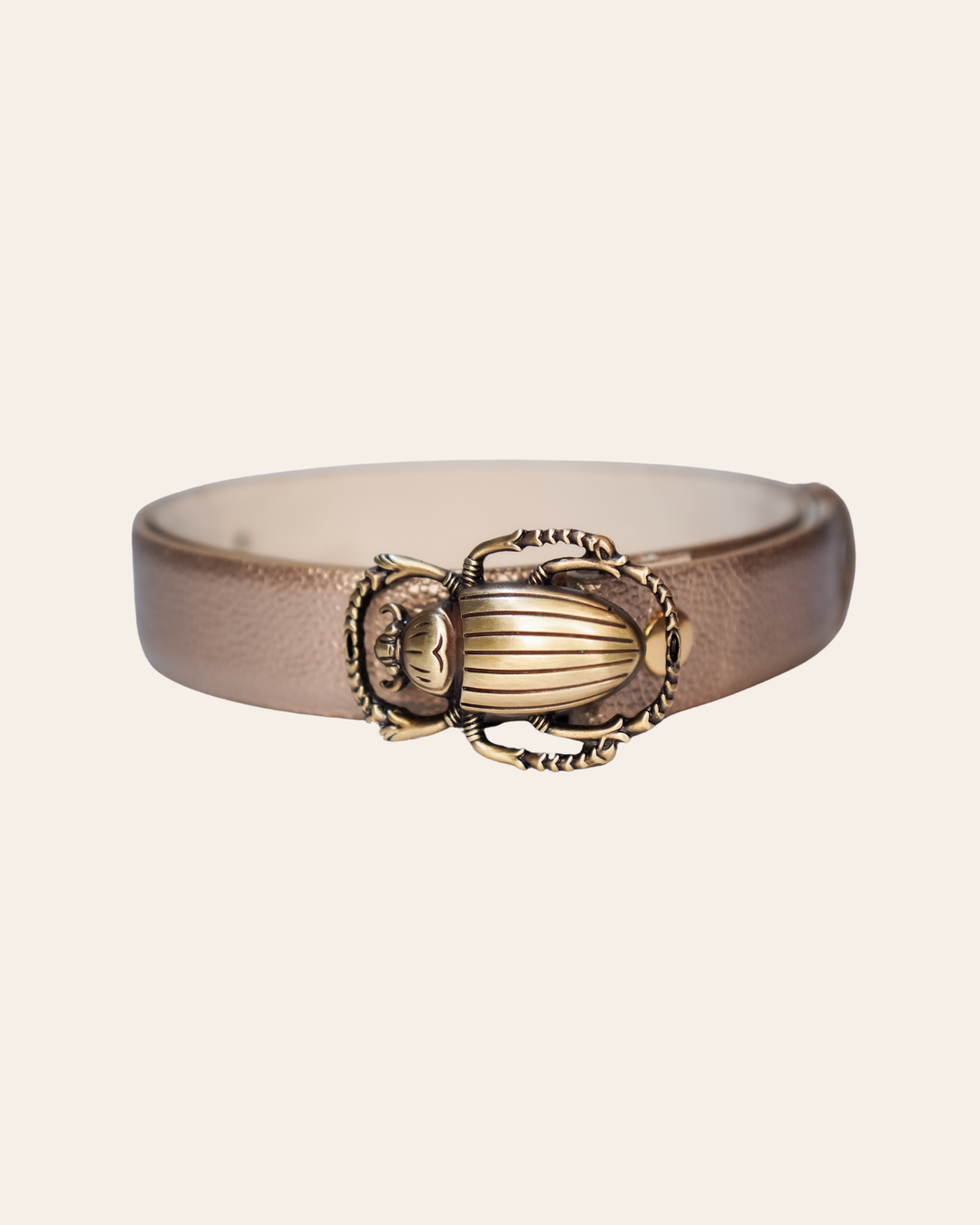 La Correa Cucarrón Dorado está hecha en cuero vacuno de alta calidad con un acabado craquelado y elegante. Su hebilla metálica en Zamak, bañada en oro, ofrece un diseño minimalista y duradero. En el reverso, lleva un sutil grabado de nuestro logo. Con ajuste regulable y un ancho de 3.0 cm, es ideal para combinar con looks casuales o formales.