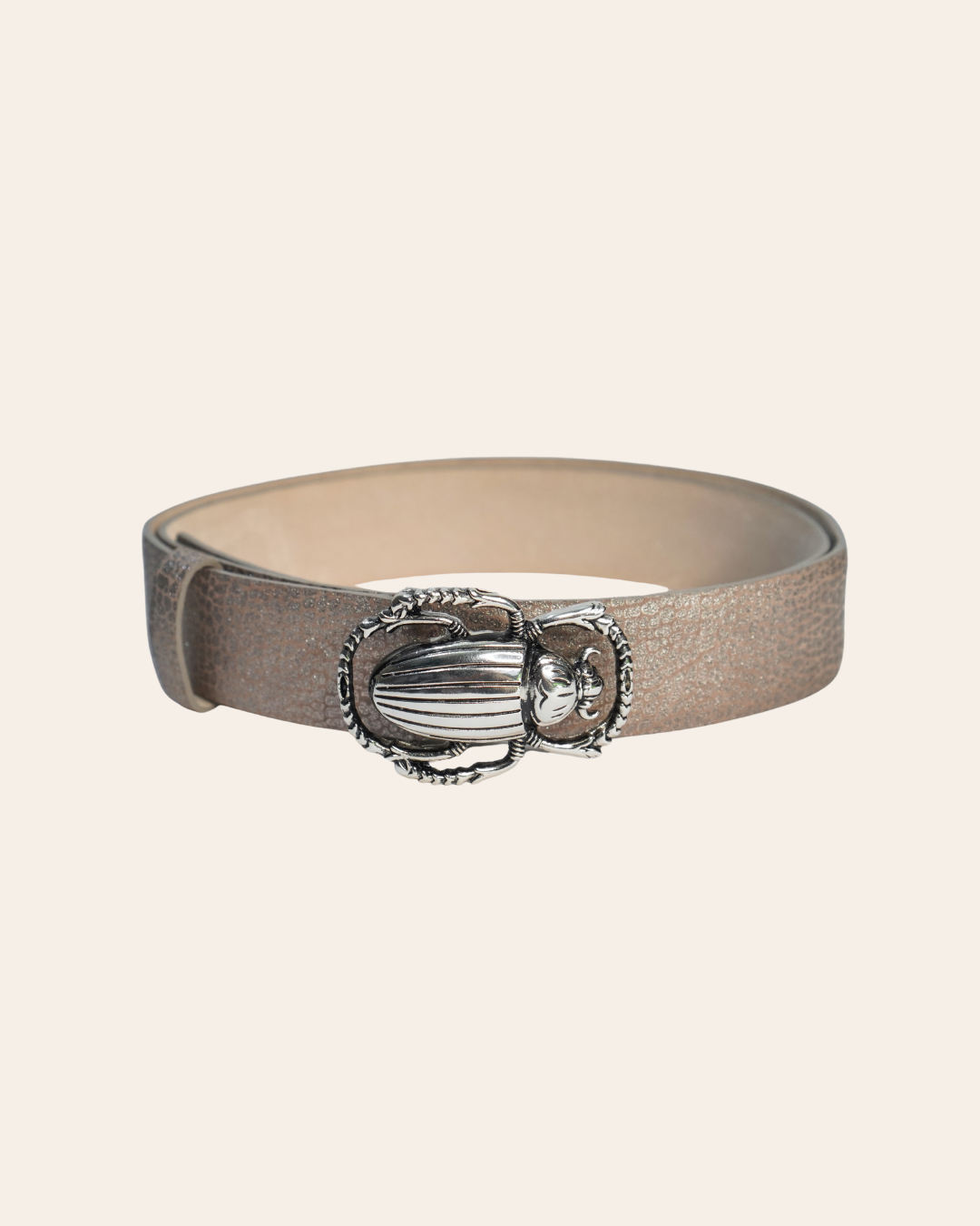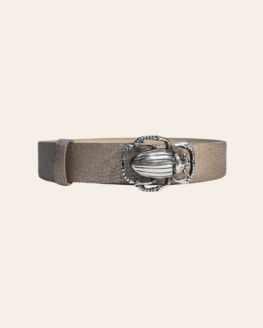La Correa Cucarrón Plateado está hecha en cuero vacuno de alta calidad con un acabado craquelado y elegante. Su hebilla metálica en Zamak, acabado de níquel, ofrece un diseño minimalista y duradero. En el reverso, lleva un sutil grabado de nuestro logo. Con ajuste regulable y un ancho de 3.0 cm, es ideal para combinar con looks casuales o formales.