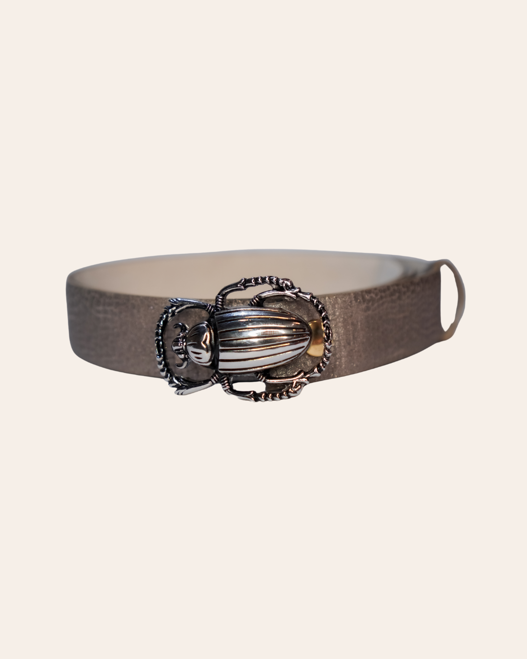 La Correa cucarrón Plateado está hecha en cuero vacuno de alta calidad con un acabado rugoso y elegante. Su hebilla metálica en Zamak, acabado de níquel, ofrece un diseño minimalista y duradero. En el reverso, lleva un sutil grabado de nuestro logo. Con ajuste regulable y un ancho de 3.0 cm, es ideal para combinar con looks casuales o formales.